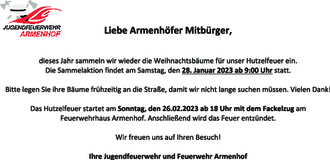 dieses Jahr sammeln wir wieder die Weihnachtsbäume für unser Hutzelfeuer ein.