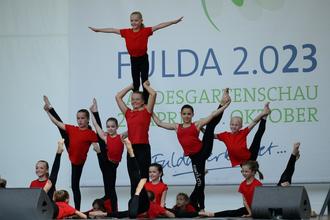 Die 24 Akrobatikkinder führten ihren Tanz zum Lied „Ein Hoch auf uns“ vor, der die ersten Grundlagen für Akrobatik, Tanzen und Turnen beinhaltete.