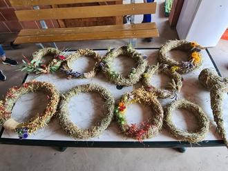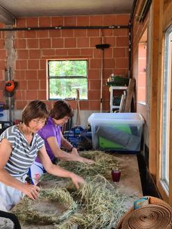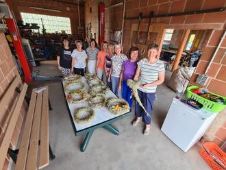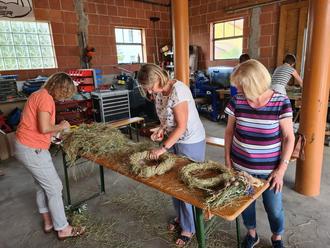Am Freitag, 18.07.25 trafen sich 8 Frauen zum Heukranz wickeln. Christiane Dehler und Christine Müller leiteten die Frauen an und zeigten das Vorgehen und die Technik, wie man einen Heukranz bzw. Heuherz wickelt. Mit viel Kreativität wurden tolle Kränze und Herzen aus Heu gestaltet und liebevoll mit allerlei schönen Dingen, was die Natur so bietet, verziert. Die Frauen verbrachten einen schönen, kreativen Nachmittag zusammen und konnten stolz ihre selbst gemachten Heukränze und Herzen mit nach Hause nehmen. Vielen Dank an alle Teilnehmer:innen!