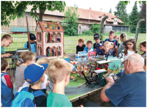 Die Veranstaltung war sehr gut besucht. Auch die Kinder der Ferienfreizeit und ihre Betreuer haben die Gelegenheit genutzt, sich alles anzuschauen. Die Besucher konnten Fragen dazu stellen, wie der Antrieb durch Wasserdampf funktioniert, die von Herrn Hain alle ausführlich beantwortet wurden. Manche Kinder, wie z. B. Leo, der später einmal Erfinder werden will, wollten alles ganz genau wissen und ließen sich jede Einzelheit erklären.