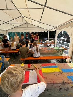 Am Donnerstag, den 18.7.2024 durften wir wegen der Nachtwanderung länger schlafen, bis wir von den Betreuern zum Frühstück geweckt wurden. Nach dem Essen haben wir unseren Auftritt für den Lagerzirkus geübt. Bevor wir wieder Tischtennis spielen, am Lagerfeuer sitzen oder bei den Zelten sein konnten, haben wir altbekannte Spiele gespielt. Zum Mittagessen gab es sehr leckeren Kartoffelbrei, Leberkäse und Gurkensalat. Nun mussten wir und sehr beeilen, da es eine Zeltkontrolle gab. Direkt danach packten wir unsere Badesachen fürs Schwimmbad.