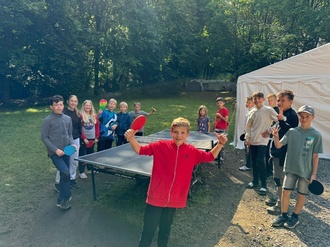 Am Donnerstag, den 18.7.2024 durften wir wegen der Nachtwanderung länger schlafen, bis wir von den Betreuern zum Frühstück geweckt wurden. Nach dem Essen haben wir unseren Auftritt für den Lagerzirkus geübt. Bevor wir wieder Tischtennis spielen, am Lagerfeuer sitzen oder bei den Zelten sein konnten, haben wir altbekannte Spiele gespielt. Zum Mittagessen gab es sehr leckeren Kartoffelbrei, Leberkäse und Gurkensalat. Nun mussten wir und sehr beeilen, da es eine Zeltkontrolle gab. Direkt danach packten wir unsere Badesachen fürs Schwimmbad.