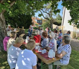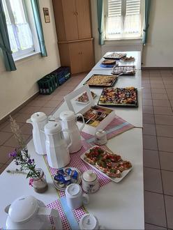 Zahlreiche Frauen aus der ganzen Gemeinde waren der Einladung der kfd gefolgt und genossen den schönen sonnigen Nachmittag bei gutem Kaffee und leckerem selbstgebackenem Kuchen.
