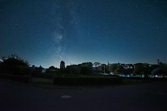 Das blass schimmernde Band der Sommermilchstraße zieht sich mit dem Sternbild Schwan von Nordosten nach Süden. Das Foto stammt aus der Ulstertal-Stadt Geisa – aufgenommen im Rahmen der länderübergreifenden Aktion „Licht aus, Sterne an!“ während der Rhöner Sternenparkwochen im August 2024. Foto: Andreas Mötzung