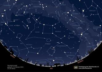 Sternenkarte für den Monat Oktober. Grafik: Vereinigung der Sternfreunde (VdS)