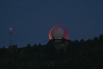 Der verfinsterte Vollmond hinter dem Radom am 07.09.2025. Foto: Christian Hillenbrand