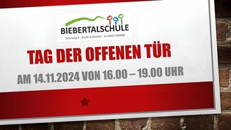 Die Biebertalschule in Hofbieber öffnet ihre Türen am 14.11.2024 von 16.00 – 19.00 Uhr. Das Angebot richtet sich an interessierte Schülerinnen und Schüler der vierten Klassen und ihre Familien. Man kann sich bei einem Rundgang über das vielfältige Bildungsangebot der Schule sowie die Schulformen Haupt- und Realschule informieren. Es werden Führungen durch Klassen- und Fachräume, Mitmachangebote, Ausstellungen und Präsentationen angeboten. Schulleiter Herr Ulrich Dölle und Konrektorin Frau Regina Bittorf werden das pädagogische Konzept der Schule erläutern und für persönliche Gespräche zur Verfügung stehen.
