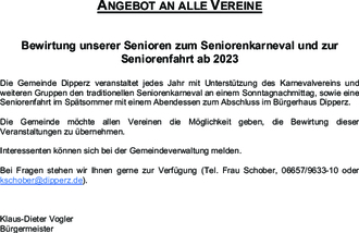 Die Gemeinde möchte allen Vereinen die Möglichkeit geben, die Bewirtung dieser Veranstaltungen zu übernehmen.