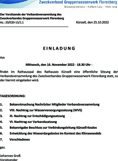 Verbandsversammlung des Zweckverbandes Gruppenwasserwerk Florenberg statt, zu