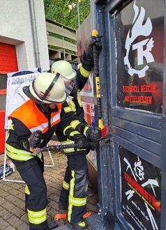 Nach der theoretischen Einführung folgte die praktische Umsetzung. An verschiedenen Übungstüren und Übungsfenstern hatten die Teilnehmer die Möglichkeit, das Gelernte anzuwenden. Unter Anleitung erfahrener Ausbilder konnten sie verschiedene Werkzeuge wie Türspreizer, Zapfenzieher, Nussmesser und das Kernziehen eines Schlosszylinders ausprobieren.