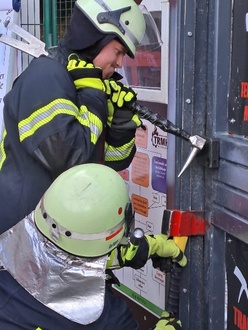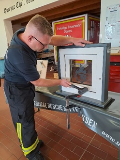 Besonders wichtig war auch das richtige Vorgehen in Notsituationen, in denen eine Tür oder Fenster schnell geöffnet werden muss, um Menschenleben zu retten. Die Teilnehmer lernten, wie man effizient und sicher vorgeht, um Verletzungen zu vermeiden und schnellstmöglich Zugang zu einem Gebäude zu erhalten. Dies wurde an einer massiven Stahltür geübt. Als Werkzeuge dienten eine Feuerwehraxt und das Halligen Tool.