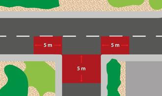 Parken an Einmündungen und Kreuzungen: Grundsätzlich gilt, dass 5 Meter vor sowie hinter den Schnittpunkten der Fahrbahnkanten das Parken unzulässig ist. Dieses Parkverbot leistet einen wichtigen Beitrag zur Verkehrssicherheit. Es sorgt nämlich dafür, dass der Einmündungsbereich für alle Verkehrsteilnehmer gut einsehbar bleibt. Das folgende Bild zeigt, was an Einmüdnungen zu beachten ist: