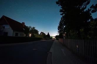 Ein Straßenzug in der Stadt Geisa während der länderübergreifenden Aktion „Licht aus, Sterne an!“, an der sich im August zahlreiche Rhöner Kommunen beteiligten. Foto: Andreas Mötzung