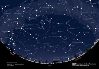 Sternenkarte für den Monat November. Grafik: Vereinigung der Sternfreunde (VdS)