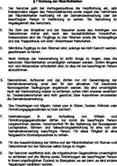 | 11. | Die Bewirtschaftung der Räumlichkeiten nach § l wird von dem Benutzer vorgenommen. |