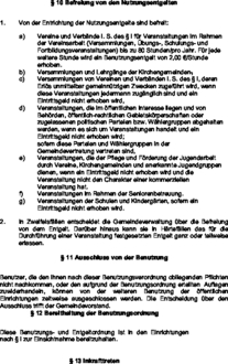 | 2. | Der Benutzer stellt die Gemeinde von allen Schadensersatzansprüchen Dritter, die sich aufgrund der Veranstaltung ergeben, in jeder rechtlichen Hinsicht frei. |
