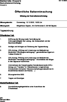 | Sitzungstermin: | Donnerstag, 15.12.2022, 19:00 Uhr |