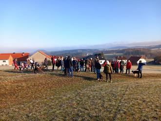 Der Ortsbeirat Finkenhain hatte zu einer Wanderung (ca.5-6 km) über Wiesen und durch Wälder entlang an der unteren Gemarkungsgrenze von Finkenhain einladen. An der Sitzecke Finkenhain konnten wir mit mehr als 40 Personen starten, als der Wadberg gerade durch den Nebel in die Sonne gestiegen ist. Die Teilnehmer zeigten sehr großes Interesse an den Flurstücks Bezeichnungen, dem Grenzverlauf und der Geschichte vom Ortsteil, der ja bis 1850 noch den Namen „Mordgraben“ getragen hat. Bei leichten Frosttemperaturen und herrlichen Sonnenschein waren es ideale Voraussetzungen für die 2,5 Stunden in der Natur und sehr kurzweilig durch die Erklärungen unterwegs. Es war nicht nur für die neu Hinzugezogenen interessant sondern auch die Alteingesessenen haben uns sehr positives Feedback gegeben und eine Fortsetzung des oberen Teils von Finkenhain bis zur Maulkuppe gefordert.
