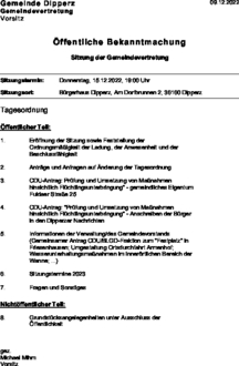 | Sitzungstermin: | Donnerstag, 15.12.2022, 19:00 Uhr |