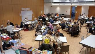 Für das leibliche Wohl war ebenfalls bestens gesorgt: Der verlockende Duft von frisch gebackenen Waffeln erfüllte den Raum, dazu gab es Kaffee, Brezeln und kühle Getränke. So konnte zwischen den Spielrunden gemütlich geplaudert und neue Energie getankt werden.