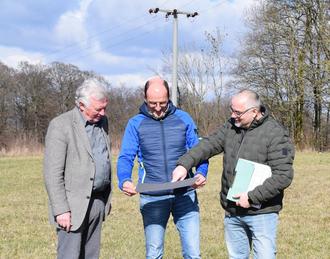 (von links): Erster Beigeordneter Klaus Bastian informierte sich bei Marcus Hief und Matthias Reucker von der EAM über die Baumaßnahme