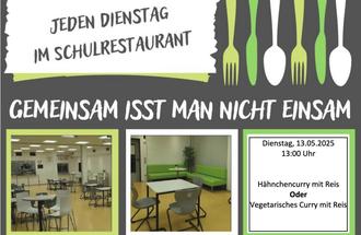 Wir laden zu unserem gemeinsamen und unterhaltsamen Mittagessen in die Schulmensa der Westerwaldschule in Driedorf ein.