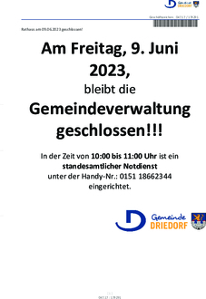 Rathaus am 09.06.2023 geschlossen!