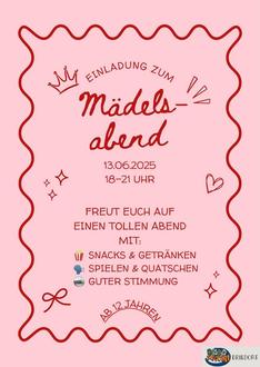 Einladung zum Mädelsabend im Jugendzentrum - Termin: 13.06.2025, 18:00 Uhr