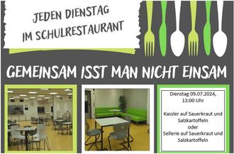 | Dienstag 09.07.2024, 13:00 Uhr Kassler auf Sauerkraut und Salzkartoffeln oder Sellerie auf Sauerkraut und Salzkartoffeln |