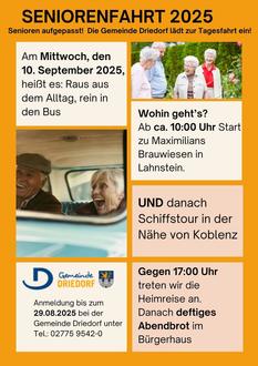 Die Gemeinde Driedorf lädt zur Tagesfahrt ein!