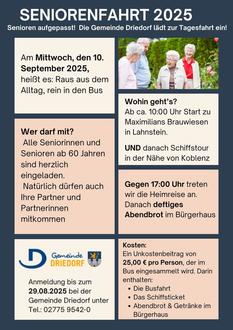 Die Gemeinde Driedorf lädt zur Tagesfahrt ein!
