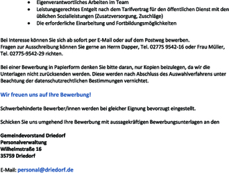 - Eigeninitiative, selbständiges Arbeiten, Motivation, Bürgerfreundlichkeit