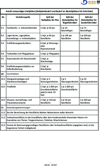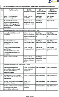 | (5) | Bei der Stellplatzberechnung ist jeweils ab einem Wert der ersten Dezimalstelle ab fünf auf einen vollen Stellplatz aufzurunden. |