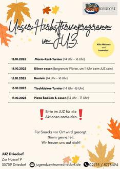 Öffnungszeiten Herbstferien JUZ