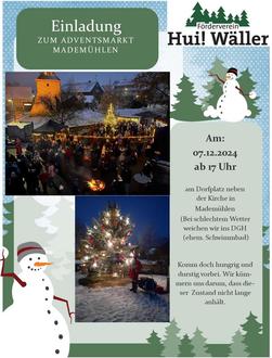 Der Förderverein Hui! Wäller Mademühlen lädt auch dieses Jahr wieder zum „Adventsmarkt“ ein, am Samstag, den 07.12.2024: