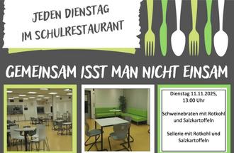 Wir laden zu unserem gemeinsamen und unterhaltsamen Mittagessen in die Schulmensa der Westerwaldschule in Driedorf ein.