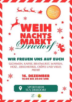 Der TuS Driedorf und der VFB Driedorf laden herzlich zum Driedorf Weihnachtsmarkt auf dem Gelände des TuS Driedorf ein.