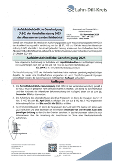 Der Kreisausschuss des Lahn-Dill-Kreises -Fachdienst Kommunal- und Finanzaufsicht- Verbandsaufsicht hat mit Schreiben vom 19.11.2024 der Inanspruchnahme von Liquiditätskrediten im Rahmen des § 4 der Haushaltssatzung zugestimmt.