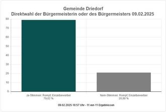 Das vorläufige Ergebnis der Wahl zum Bürgermeister der Gemeinde Driedorf konnte am Sonntag, 9. Februar 2025, ermittelt werden.