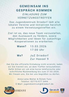 Einladung Vereine JUZ Driedorf