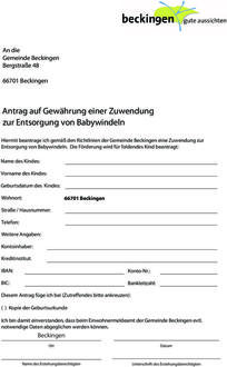 Antrag auf Gewährung einer Zuwendung zur Entsorgung von Babywindeln