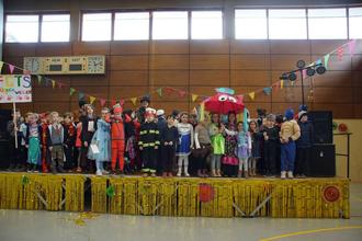 Der Bürgermeister wurde von den Kindern zur Bühne in der Deutschherrenhalle gebracht