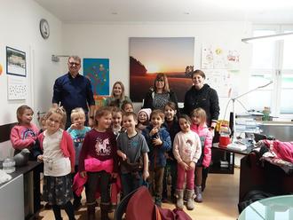 Die Vorschulkinder der Kindertageseinrichtung St. Luzia Erbringen bei ihrem Besuch im Arbeitszimmer des Bürgermeisters.