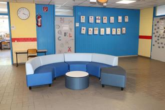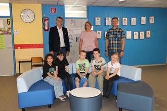 Grund zur Freude haben die Schülerinnen und Schüler der Grundschule Reimsbach. Für knapp 12.000 Euro wurden neue Flurmöbel beschafft. Nachdem diese aufgebaut worden waren, konnten die Kinder das neue Mobiliar natürlich direkt ausprobieren. Die stattliche Summe für die Anschaffung der Flurmöbel wurde vom Förderverein der Grundschule Reimsbach mit 6500 Euro und von der Gemeinde Beckingen mit einem Zuschuss von 5000 Euro gestemmt. „Unterstützt wird damit die pädagogisch-didaktische Arbeit unserer Schule“, erklärt Schulleiterin Gertrud Lenhof, die sich bei Bürgermeister Thomas Collmann und dem 1. Vorsitzenden des Fördervereins, Max Kammer, ganz herzlich im Namen der Kinder und Eltern bedankte. „Mit unserer Arbeit wollen wir dazu beitragen, dass Schule nicht nur ein Lern-, sondern auch ein Lebensraum ist, in dem sich Kinder wohlfühlen können“, betonte Max Kammer. Der Förderverein unterstütze regelmäßig Projekte, die die Entwicklung der Schülerinnen und Schüler fördern und die tägliche Arbeit der Lehrkräfte sinnvoll ergänzen.Vor Ort konnte sich der Bürgermeister ein Bild von den neuen Möbeln machen und sich davon überzeugen, dass diese stabil, leicht abwaschbar und feuersicher sind. Der Flur im Erdgeschoss wurde mit verschiedenen Polstersitzelementen mit Rückwand sowie mehren JOYN-Hockern sowie einem Vitrinenschrank ausgestattet. Im Obergeschoss fanden ein SOLID-Tisch, zwei SOLID-Bänke, mehrere JUNIOR-Bänke, JUNIOR-Tisch sowie ein weiterer Vitrinenschrank Platz.