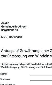 Antrag auf Gewährung einer Zuwendung zur Entsorgung von Windeln wegen Inkontinenz