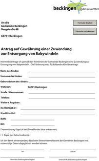 Antrag auf Gewährung einer Zuwendung zur Entsorgung von Babywindeln
