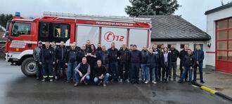 Die Feuerwehrkollegen aus Antweiler und einige Kameraden der Feuerwehr Reimsbach im Gruppenbild anlässlich des saarländischen Abends vor Ort in Antweiler.