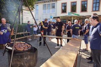Nach dem gelungen ersten Helferfest im vorigen Jahr hatte die Gemeinde Beckingen freitags abends wiederum zu einem solchen Fest auf den Platz vor der alten Wäscherei eingeladen. Diesen hatte das dort beheimatete JUZ für sein Sommerfest am folgenden Tag bereits entsprechend hergerichtet. Bürgermeister Thomas Collmann hieß viele ehrenamtliche Helferinnen und Helfer aus der Gemeinde Beckingen willkommen. Dies waren Feuerwehrfrauen und -männer aus den 9 Löschbezirken, Helferinnen und Helfer des THW-Ortsverbandes Beckingen, des DRK-Ortsvereins Reimsbach-Oppen-Erbringen-Hargarten und der DLRG-Ortsgruppe Beckingen mit Führungskräften. Als weitere Gäste konnte der Bürgermeister auch MdL Sebastian Schmitt, den 2. Beigeordneten Marvin Bimperling, den CDU-Fraktionsvorsitzenden Nicolas Adam, den SPD-Fraktionsvorsitzenden Josef Bernardi und andere begrüßen. Collmann lobte alle in der Gemeinde in ihrer Freizeit zum Wohle der Mitbürger tätigen Kräfte der Hilfsorganisationen und betonte: „Ich möchte euch Danke sagen für eure ehrenamtliche Tätigkeit und Engagement. Was würden wir ohne euch machen.“ Dankesworte galten auch Mitarbeitern des Ordnungsamtes, die das Fest organisiert hatten. Für die Bedienung aus dem Getränkestand sorgten JUZ-Mitglieder. Die schweißtreibende Arbeit am Grill für die köstlichen Schwenker und Rostwurst erledigte das Team vom Beckinger Fastnachts-Gaudiwurm. In geselliger Runde saß oder stand man dann noch lange zusammen.