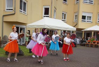 Die Seniorenbetreuung Haus Blandine hatte wieder zum Sommerfest eingeladen. Zu Beginn feierte Pastor Helmut Mohr in der Hauskapelle eine Hl. Messe. Danach unterhielten die Sänger des Männerchores Düppenweiler unter Leitung von Florian Schwarz die Hausbewohner und vielen Gäste mit ihren Liedern. Vor dem Mittagessen, bei dem 3 Varianten zur Auswahl standen, hieß Geschäftsführer Jan Friedrich alle willkommen und wünschte einen angenehmen Aufenthalt. Das Unterhaltungsprogramm nachmittags bei Kaffee und Kuchen eröffneten Betreuungsmitarbeiterinnen und -mitarbeiter mit einer flotten Lollipop-Tanzvorstellung, für die sie viel Beifall erhielten. Es folgte die Verabschiedung der Pflegefachkraft Lidia Barankow nach mehr als 20jähriger Tätigkeit im Haus durch die Heimleiterin Edith Friedrich, Pflegedienstleiter Marc Helfen und Kolleginnen. Dann setzte plötzlich starker Regen ein und die Veranstaltung musste mit gekürztem Programm in der Cafeteria fortgesetzt werden. Nach dem Grillen von leckeren Spezialitäten abends sorgte Betreuungsleiter Peter Wolf mit seiner Schlagerparty für beste Stimmung.