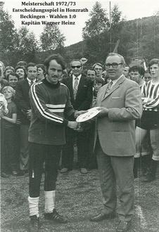In dieser Zeit wurde noch das Walter Müller Gedächtnisturnier in Honzrath und der Litermontpokal in Düppenweiler sowie der Amtspokal der Gemeinde Beckingen ausgespielt. Der FC Beckingen konnte im Jahre 1972 alle drei Turniere gewinnen. Das Walter Müller Gedächtnisturnier wurde mit 4:0 gegen Scheuern gewonnen. Beim Litermontpokal siegte man im Endspiel gegen den FC Reimsbach mit 8:7 (2:2) im Elfmeterschießen. Der Amtspokal der Gemeinde Beckingen wurde in Honzrath mit 2:1 gegen den SV Erbringen gewonnen. Mit dem neuen Trainer Hans Kockler aus Diefflen ging man in die Spielsaison 1972/73. Anfangs duellierte man sich lange mit dem FC Gerlfangen und der TUS Haustadt. Gegen Ende der Runde waren es nur noch der SV Wahlen und der FC Beckingen. Am letzten Spieltag hatten beide Mannschaften 47:5 Punkte so dass ein Endscheidungsspiel um die Meisterschaft der C - Klasse Beckingen ausgetragen werden musste. Dies fand am 27. Mai 1973 in Honzrath statt. Vor ca. 3000 Zuschauer siegte der FC Beckingen nach hartem Kampf mit einem Tor in der 65. Minute durch Alfons Ewen mit 1:0.